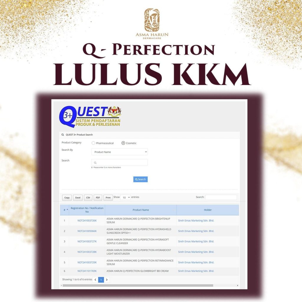 Ya, semua produk Asma Harun Dermacare diperbuat di kilang bertaraf GMP, dan berdaftar dengan Kementerian Kesihatan Malaysia (KKM).
